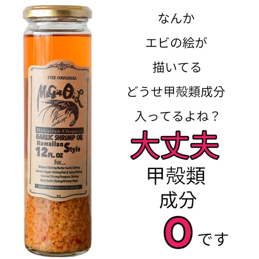 日本初!国内製造の完全無添加、化学調味料不使用の完全オリジナルガーリックシュリンプオイルになります。北海道内スーパー各店で大量販売中商品です。使い方は無限大!!パスタにもお肉にも合うこと間違いなし!!アウトドアにも!